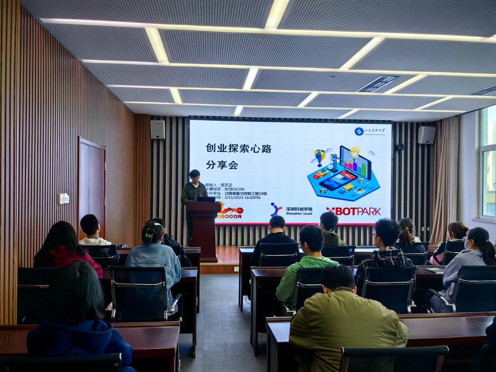 3月11日,为提升同学们创新创业的兴趣、增加学校科创氛围,学院邀请机电学院过控18级学生、深圳科创学院种子轮在孵团队leader苏文正,就机器人比赛创新方向为本校开展创业心得分享会。