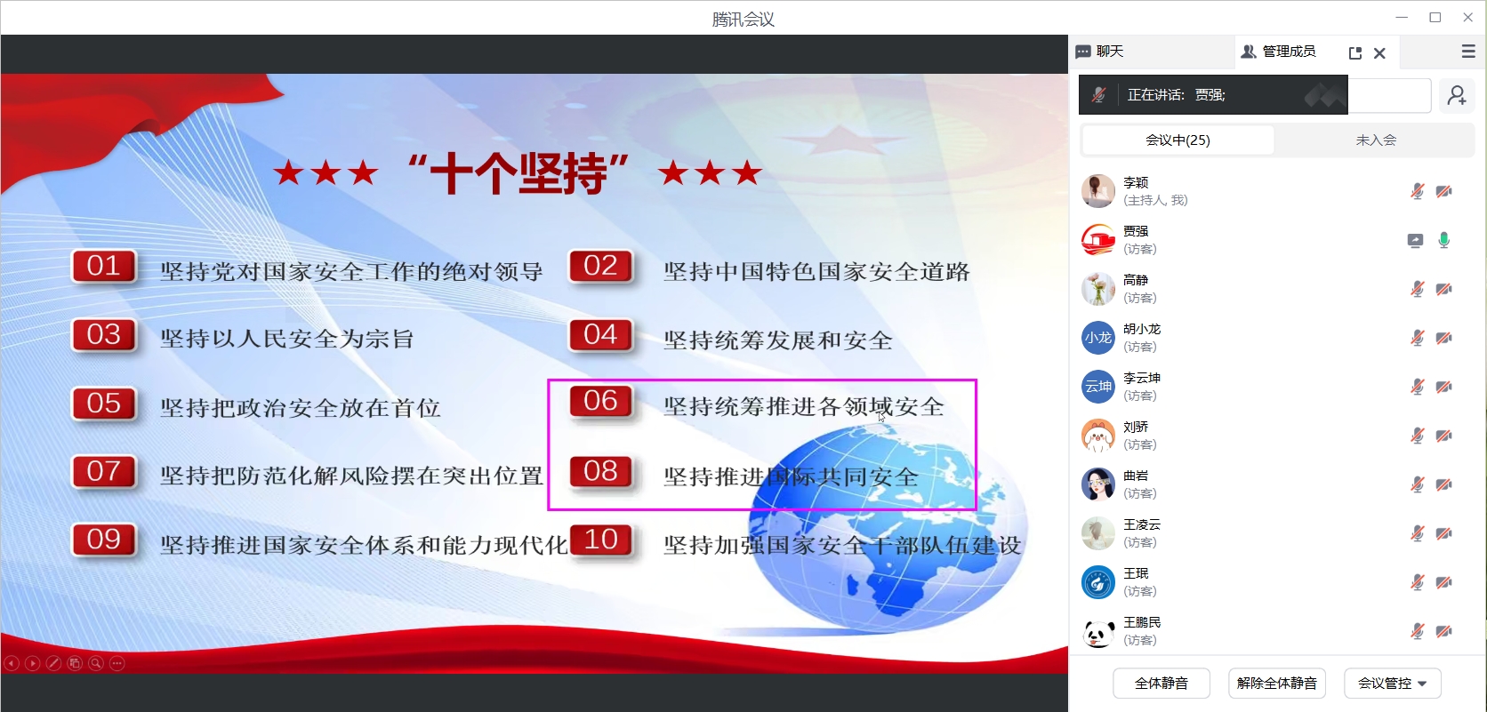 本次集体备课由虚拟教研室主任贾强老师就第二次课的内容进行讲解。贾强老师结合本部分授课课件,从坚持军事安全、坚持科技安全、坚持文化安全、坚持社会安全和促进国际安全五个部分进行了讲解和分享。贾老师的分享紧扣大纲、图文并茂、内容丰富,并且结合新近发生的实例,引人入胜,让每位老师受益颇丰。