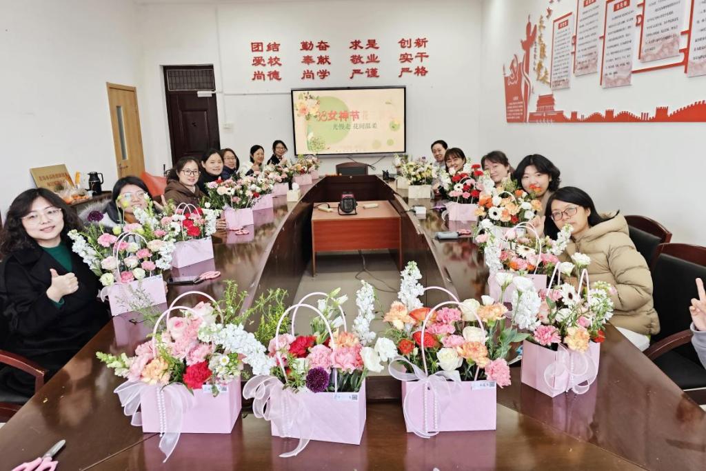 花枝承载着自然的诗意,亦诠释着女性的柔美与力量。此次活动让女教师全面了解插花的技艺,激发了大家对美的创造力,用剪刀裁剪出生命的形态,用色彩编织出热烈的情感。大家在花香中找寻工作与生活的平衡点,用花艺滋养心灵。