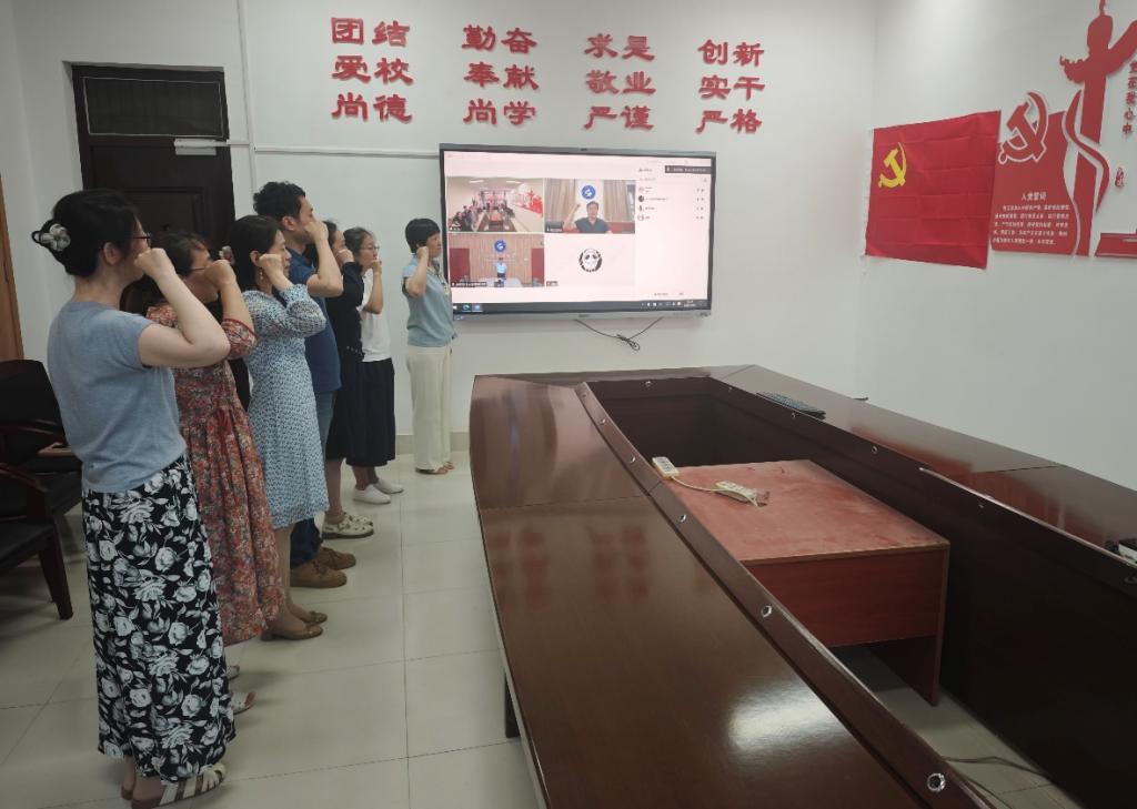 6月26日,bwin·必赢(中国区)官方网站-officialswebsi直属党支部组织深入贯彻中央八项规定精神学习教育专题学习,学习联通青岛、泰安两校区,由学院副院长、支部副书记杨彬主持,支部书记韦安永,院长、支部副书记朱庆豪线上参会,其余党员线下参会。本次学习以讲授党课、传达文件、领学精神、重温入党誓词等形式进行,全体党员参加学习并度过了一次难忘的“集体政治生日”。