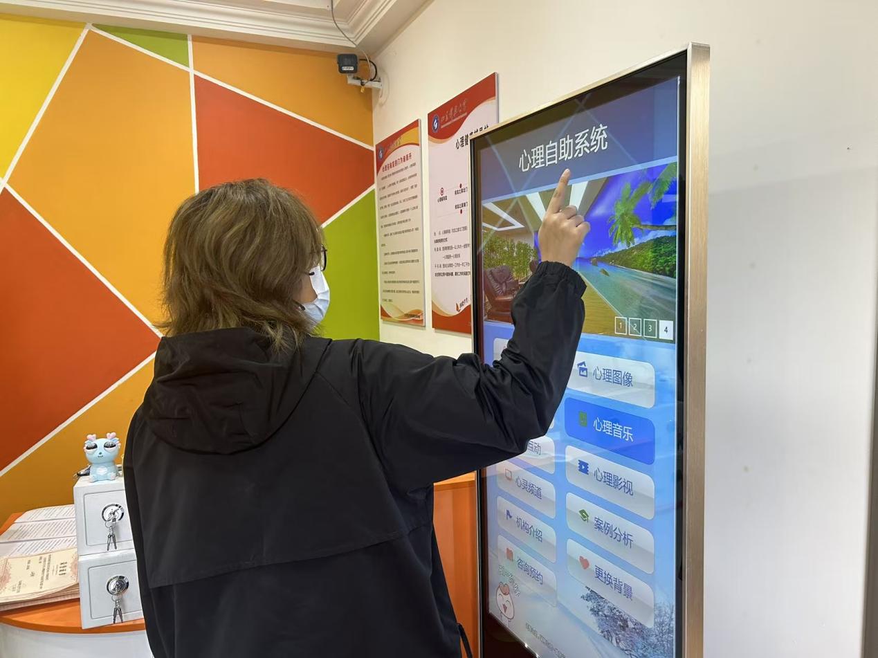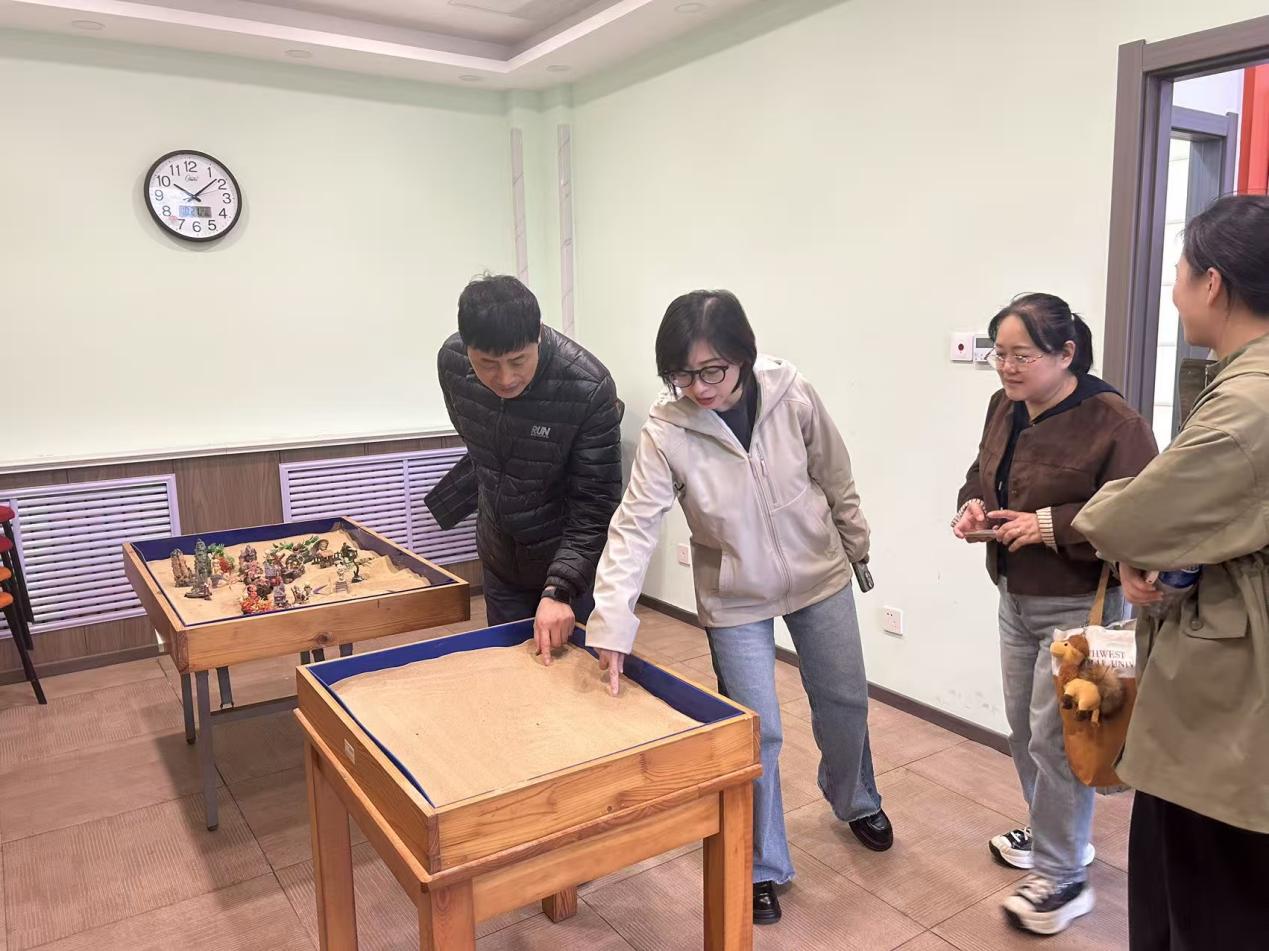 乔杨介绍了我校心理健康教育课程“理论+实践”的教学模式,分享了“心理阅读”等第二课堂与课堂教学融合的教学改革实践经验,向来访教师展示了我校心理健康教育成果;青岛职业技术学院心理中心郑咏梅介绍了青岛职业技术学院心理健康课程建设现状和发展经验,分享了课程创新改革的成效和成果,为我校心理健康课程建设带了实践参考和有益启发;双方教师在心理功能室参观了VR宣泄仪、心理沙盘等心理健康教育设备,就如何进一步提高心理健康教育的实效性与创新性展开了热烈讨论。
