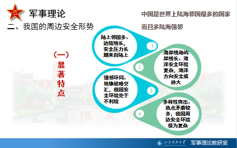 结合学生在《国家安全教育》《形势与政策》等课程中所学内容,李为君老师对《军事理论》课程中“国家安全”章节总体国家安全观等重点内容的把握、线上资源的应用等进行了详细说明,又从热点问题出发讲述了国家安全形势的特点和整体趋势,强调了教学内容更新的时效性。接着,董飞老师就如何通过学习通发布课堂作业、讨论等活动形式充分发挥线上资源作用分享了心得,并对课堂教学案例的选用提出了建议。
