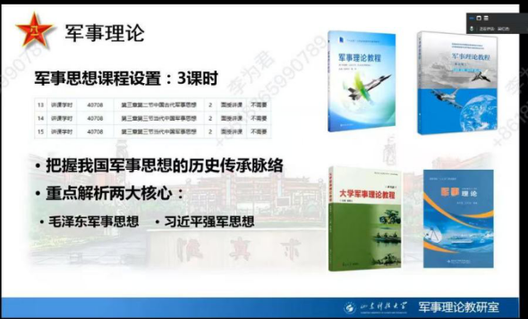 11月7日,军事理论虚拟教研室就军事思想模块的教学方法创新开展交流探讨。教研活动由教研室副主任吴红进主持,《军事理论》课程三校区任课教师线上参与。