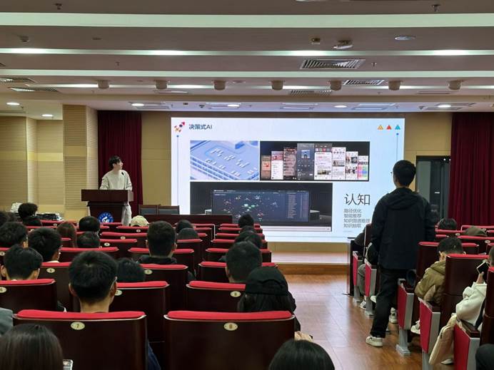 10月27日下午,主题为“人工智能与生成式AI的产业实践”的创新创业大讲堂成功举办,本次讲座由智能装备学院研究生龙鄢洪主持,百度飞桨技术专家吴博群老师主讲。全校各专业160余名学生参加。