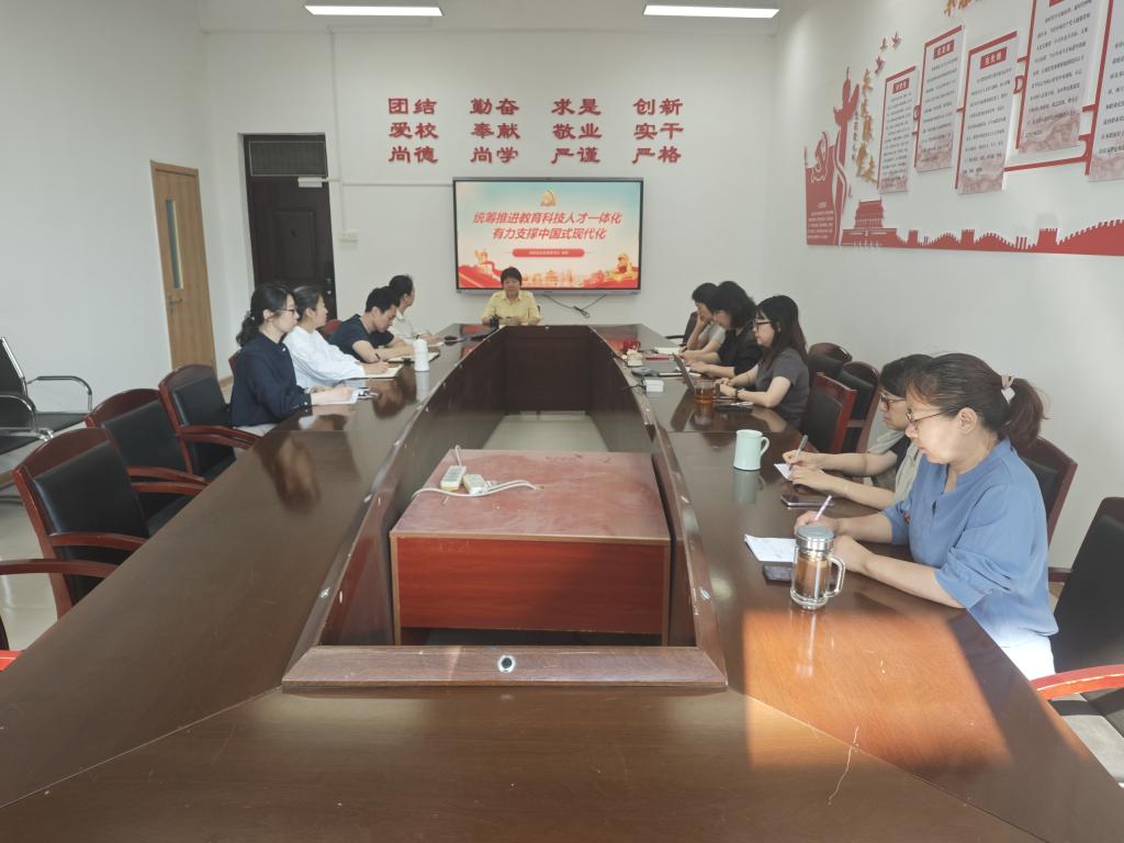 杨彬为支部党员讲授《统筹推进教育、科技、人才一体化 有力支撑中国式现代化》主题党课,带领大家学习了习近平总书记在全国两会期间关于教育、科技、人才的重要讲话。她强调,全体党员、教师要深刻理解和把握习近平总书记的讲话精神,结合学院创新创业教育、课程建设等方面深入思考,围绕“立德树人”根本任务,切实发挥好工作的育人实效。